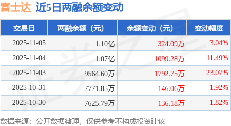 证券之星消息,11月5日,富士达(920640)融资买入2618.48万元,融资偿还2294.39万元,融资净买入324.09万元,融资余额1.1亿元,近3个交易日已连续净买入累计3216.12万元,近20个交易日中有15个交易日出现融资净买入。
