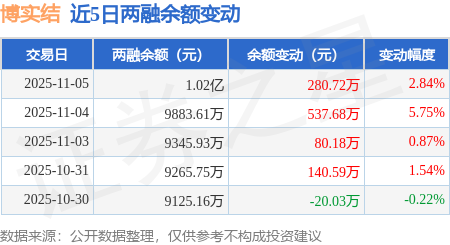 证券之星消息,11月5日,博实结(301608)融资买入669.2万元,融资偿还388.47万元,融资净买入280.72万元,融资余额1.02亿元,近3个交易日已连续净买入累计898.58万元。