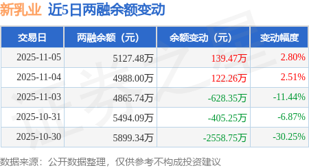 证券之星消息,11月5日,新乳业(002946)融资买入606.99万元,融资偿还467.09万元,融资净买入139.9万元,融资余额5093.44万元。