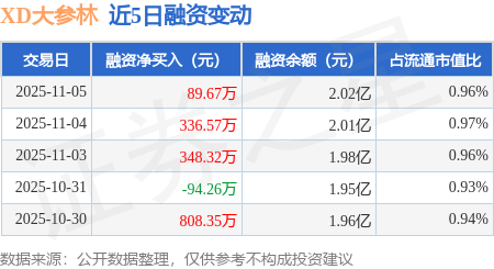 证券之星消息,11月5日,XD大参林(603233)融资买入954.25万元,融资偿还864.57万元,融资净买入89.67万元,融资余额2.02亿元,近3个交易日已连续净买入累计774.57万元,近20个交易日中有11个交易日出现融资净买入。