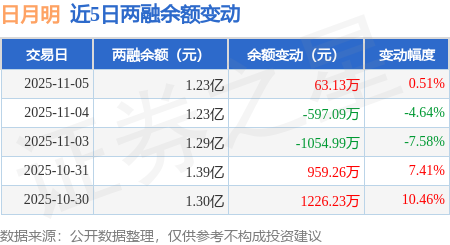 证券之星消息,11月5日,日月明(300906)融资买入2299.03万元,融资偿还2235.9万元,融资净买入63.13万元,融资余额1.23亿元,近20个交易日中有13个交易日出现融资净买入。