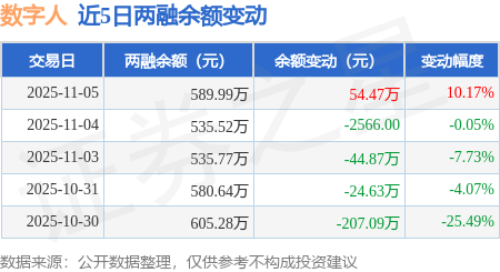 证券之星消息,11月5日,数字人(920670)融资买入157.98万元,融资偿还103.51万元,融资净买入54.47万元,融资余额589.99万元。