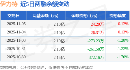 证券之星消息,11月5日,伊力特(600197)融资买入310.2万元,融资偿还273.7万元,融资净买入36.5万元,融资余额2.09亿元。