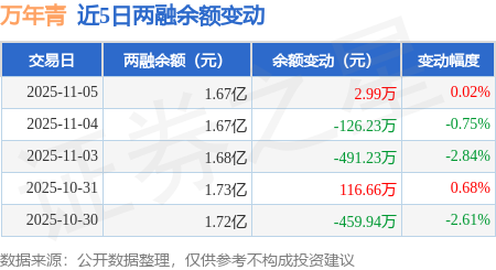证券之星消息,11月5日,万年青(000789)融资买入396.35万元,融资偿还392.52万元,融资净买入3.83万元,融资余额1.67亿元。