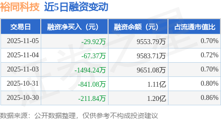 证券之星消息,11月5日,裕同科技(002831)融资买入1825.44万元,融资偿还1855.36万元,融资净卖出29.92万元,融资余额9553.79万元。