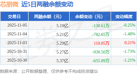 证券之星消息,11月5日,芯朋微(688508)融资买入1932.84万元,融资偿还2052.83万元,融资净卖出119.99万元,融资余额5.19亿元。