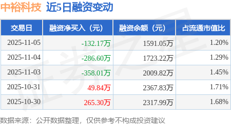证券之星消息,11月5日,中裕科技(920694)融资买入172.32万元,融资偿还304.49万元,融资净卖出132.17万元,融资余额1591.05万元,近20个交易日中有11个交易日出现融资净买入。