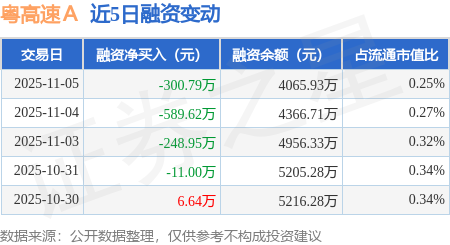 证券之星消息,11月5日,粤高速A(000429)融资买入709.14万元,融资偿还1009.92万元,融资净卖出300.79万元,融资余额4065.93万元。