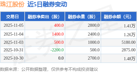 融券方面,当日融券卖出400.0股,融券偿还0.0股,融券净卖出400.0股,融券余量2800.0股,近3个交易日已连续净卖出累计2300.0股。