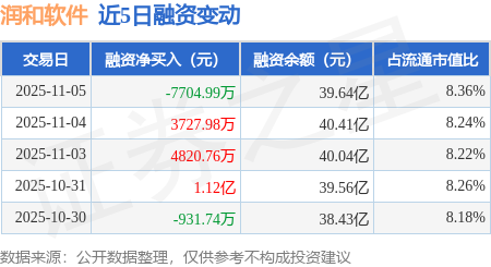 证券之星消息,11月5日,润和软件(300339)融资买入4.02亿元,融资偿还4.79亿元,融资净卖出7704.99万元,融资余额39.64亿元,近20个交易日中有15个交易日出现融资净买入。