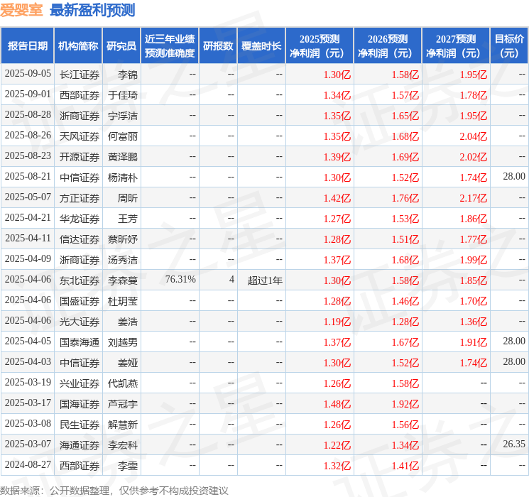 开源证券股份有限公司黄泽鹏,姚慕宇近期对爱婴室进行研究并发布了研究报告《公司信息更新报告:2025Q3主业门店稳健扩张,万代合作持续推进》,给予爱婴室买入评级。