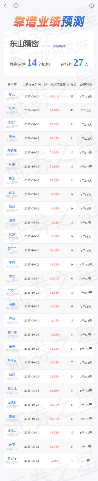 东山精密(002384)是基金大佬谢治宇的重仓股。,其在整个职业生涯内年化收益高达17.41%。谢治宇的大佬持仓 - 战绩回顾截图如下: