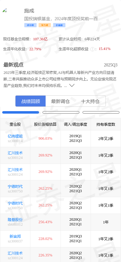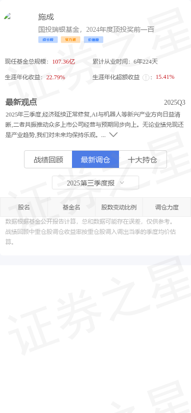 在最新基金报告期内,施成有以下调仓(附大佬持仓 - 最新调仓截图):