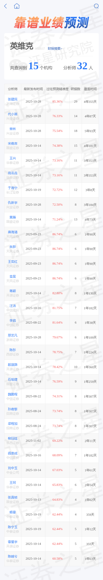如果您对这家公司感兴趣,可以参考证星研究院统计的英维克的分析师业绩预测数据,其中根据浙商证券的分析师张建民预测公司未来PE为48.0(更多特色估值数据尽在证星研究院,所有数据均来源公开资料,期且所有资料都存在一定时间滞后,所有相关数据均不可作为投资决策单一依据)。