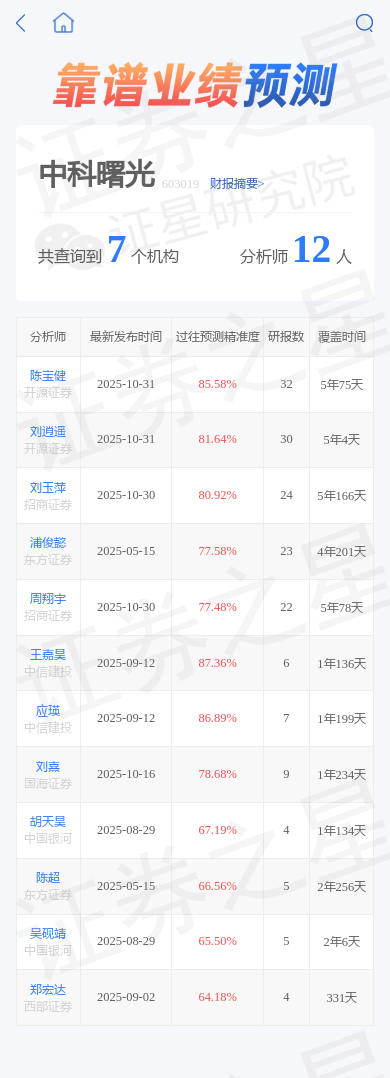 如果您对这家公司感兴趣,可以参考证星研究院统计的中科曙光的分析师业绩预测数据,其中根据开源证券的分析师陈宝健预测公司未来PE为47.0(更多特色估值数据尽在证星研究院,所有数据均来源公开资料,期且所有资料都存在一定时间滞后,所有相关数据均不可作为投资决策单一依据)。