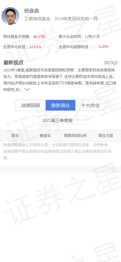 在最新基金报告期内,杨鑫鑫有以下调仓(附大佬持仓 - 最新调仓截图):