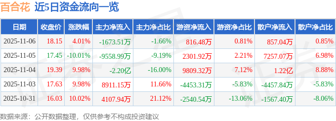 证券之星消息,截至2025年11月6日收盘,百合花(603823)报收于18.15元,上涨4.01%,换手率13.51%,成交量55.52万手,成交额10.1亿元。