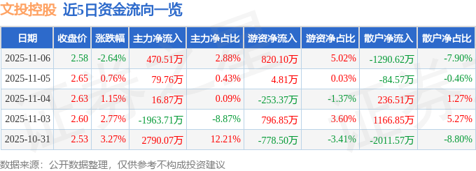 证券之星消息,截至2025年11月6日收盘,文投控股(600715)报收于2.58元,下跌2.64%,换手率2.38%,成交量63.37万手,成交额1.63亿元。