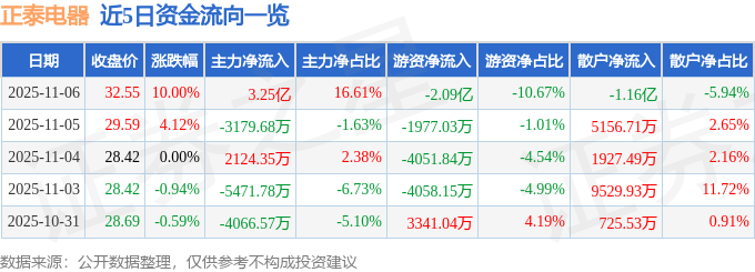 11月6日的资金流向数据方面,主力资金净流入3.25亿元,占总成交额16.61%,游资资金净流出2.09亿元,占总成交额10.67%,散户资金净流出1.16亿元,占总成交额5.94%。