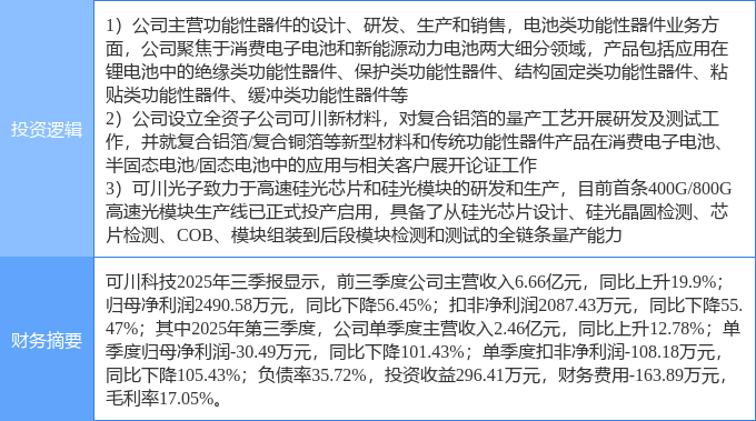 该股为光通信,PET复合铜箔,锂电池概念热股,当日光通信概念上涨2.83%,PET复合铜箔概念上涨1.65%,锂电池概念上涨1.5%。