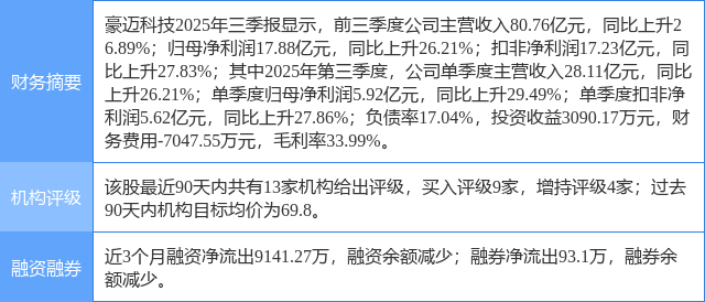 今日豪迈科技(002595)涨6.26%,收盘报70.27元。