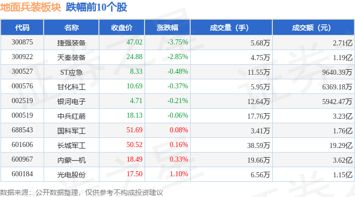 证券之星消息,11月6日地面兵装板块较上一交易日上涨0.25%,北方长龙领涨。当日上证指数报收于4007.76,上涨0.97%。深证成指报收于13452.42,上涨1.73%。地面兵装板块个股涨跌见下表: