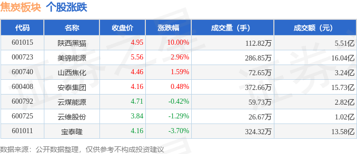 证券之星消息,11月6日焦炭板块较上一交易日上涨2.15%,陕西黑猫领涨。当日上证指数报收于4007.76,上涨0.97%。深证成指报收于13452.42,上涨1.73%。焦炭板块个股涨跌见下表: