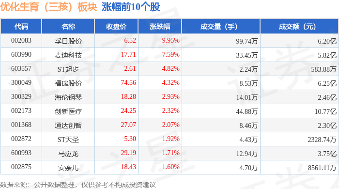 从资金流向上来看,当日优化生育(三孩)板块主力资金净流出9.14亿元,游资资金净流入2.39亿元,散户资金净流入6.75亿元。优化生育(三孩)板块个股资金流向见下表:
