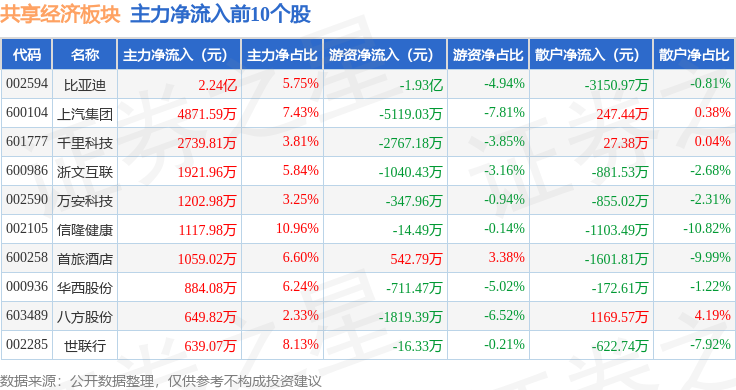 从资金流向上来看,当日共享经济板块主力资金净流出9.64亿元,游资资金净流入3604.97万元,散户资金净流入9.27亿元。共享经济板块个股资金流向见下表: