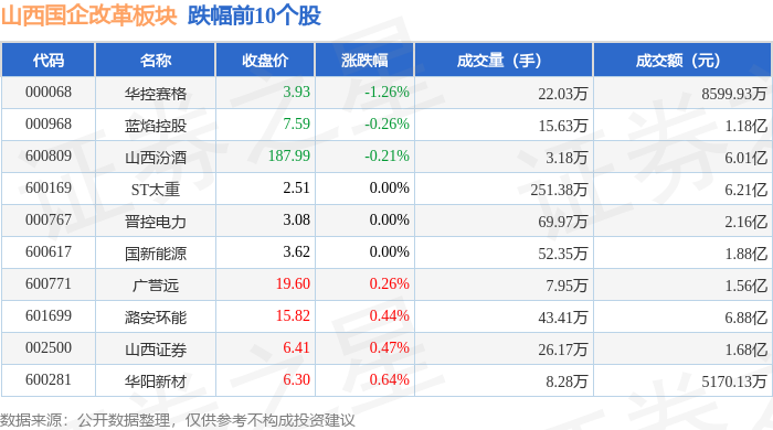 从资金流向上来看,当日山西国企改革板块主力资金净流入2.54亿元,游资资金净流出8227.31万元,散户资金净流出1.71亿元。山西国企改革板块个股资金流向见下表: