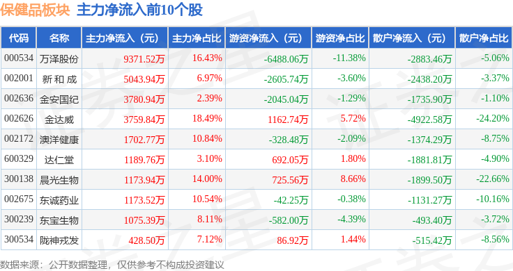 从资金流向上来看,当日保健品板块主力资金净流出4.98亿元,游资资金净流出1780.6万元,散户资金净流入5.16亿元。保健品板块个股资金流向见下表: