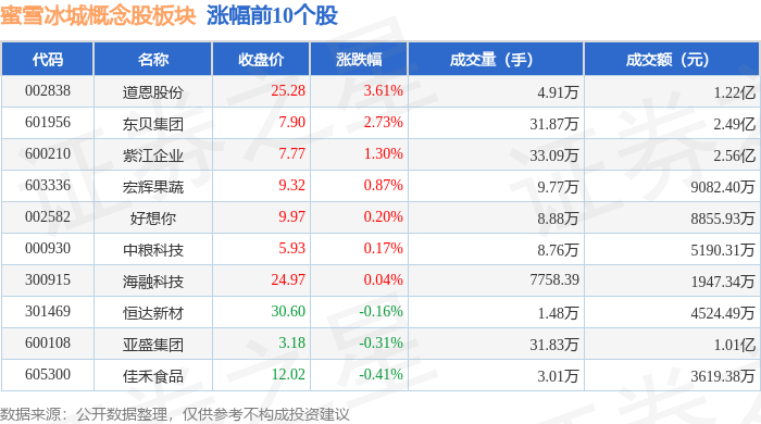 从资金流向上来看,当日蜜雪冰城概念股板块主力资金净流出2488.25万元,游资资金净流出1170.15万元,散户资金净流入3658.39万元。蜜雪冰城概念股板块个股资金流向见下表: