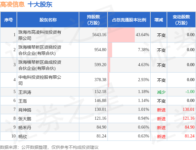 根据高凌信息2025年三季报公布的十大股东详情如下: