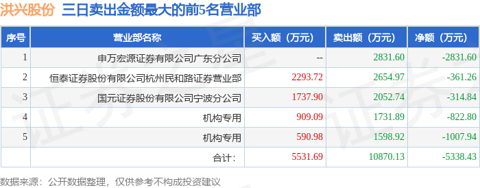 证券之星消息,沪深交易所2025年11月6日公布的交易公开信息显示,洪兴股份(001209)因连续三个交易日内,涨幅偏离值累计达到20%的证券登上龙虎榜。此次是近5个交易日内第1次上榜。