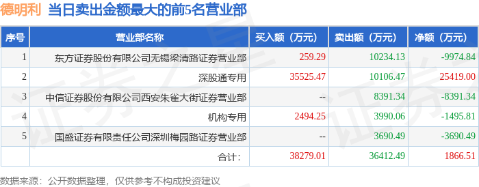 从龙虎榜公布的当日买卖数据来看,机构合计净卖出1495.81万元,北向资金合计净买入2.54亿元。章盟主、方新侠等知名游资榜上有名。(知名游资章盟主一般指国泰海通证券股份有限公司上海长宁区江苏路证券营业部席位、知名游资方新侠一般指中信证券股份有限公司西安朱雀大街证券营业部席位,根据市场资料整理,仅供参考)