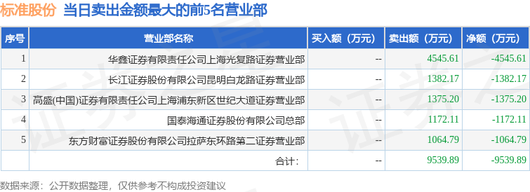 证券之星消息,沪深交易所2025年11月6日公布的交易公开信息显示,标准股份(600302)因有价格涨跌幅限制的日价格振幅达到15%的前五只证券,有价格涨跌幅限制的日收盘价格跌幅偏离值达到7%的前五只证券登上龙虎榜。此次是近5个交易日内第2次上榜。