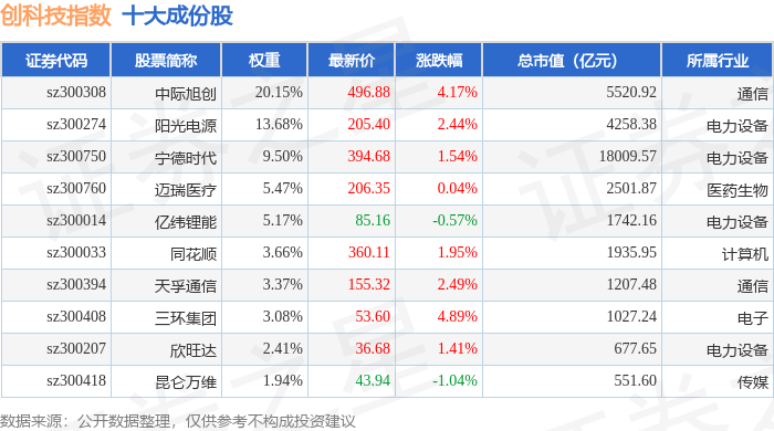 证券之星消息,11月6日,创科技(399276)指数报收于8044.13点,涨1.95%,成交998.69亿元,换手率3.53%。当日该指数成份股中,上涨的有34家,赛微电子以13.14%的涨幅领涨,下跌的有15家,卫宁健康以10.38%的跌幅领跌。