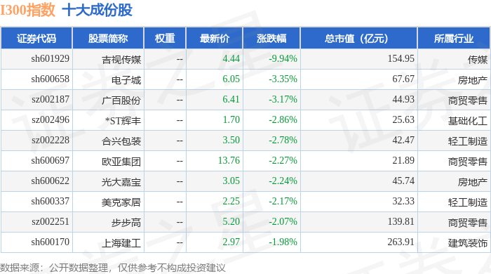 证券之星消息,11月6日,I300(399416)指数报收于4770.77点,涨0.91%,成交498.71亿元,换手率0.2%。当日该指数成份股中,上涨的有158家,常宝股份以10.04%的涨幅领涨,下跌的有111家,吉视传媒以9.94%的跌幅领跌。