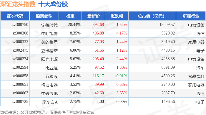 深证龙头(399653)指数十大成份股详情如下: