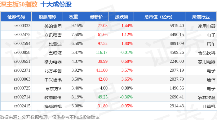 资金流向方面,深主板50(399750)指数成份股当日主力资金净流入合计10.0亿元,游资资金净流出合计8.78亿元,散户资金净流出合计1.22亿元。成份股资金流向详情见下表: