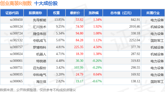 创业高装R(470040)指数十大成份股详情如下: