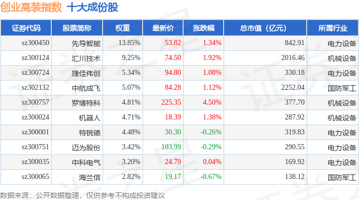 证券之星消息,11月6日,创业高装(970040)指数报收于4109.99点,涨0.87%,成交286.71亿元,换手率4.6%。当日该指数成份股中,上涨的有31家,罗博特科以4.5%的涨幅领涨,下跌的有17家,航天智造以4.44%的跌幅领跌。