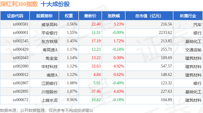 证券之星消息,11月6日,深红利300(970062)指数报收于5662.08点,涨1.51%,成交1932.36亿元,换手率1.92%。当日该指数成份股中,上涨的有218家,常宝股份以10.04%的涨幅领涨,下跌的有76家,厦门港务以10.03%的跌幅领跌。