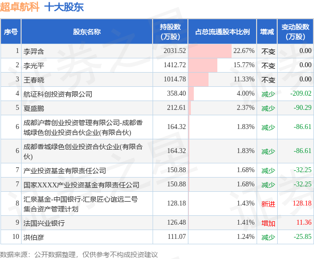 根据超卓航科2025年三季报公布的十大股东详情如下: