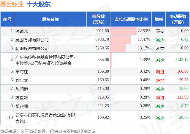根据惠云钛业2025年三季报公布的十大股东详情如下: