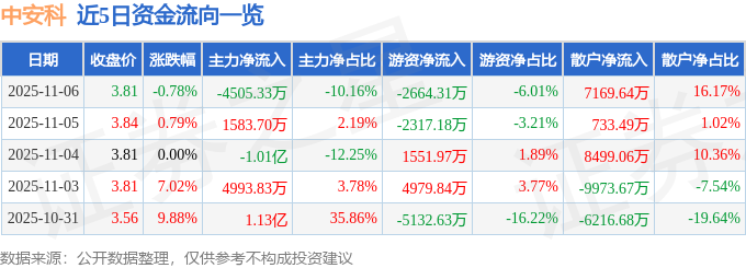 证券之星消息,截至2025年11月6日收盘,中安科(600654)报收于3.81元,下跌0.78%,换手率5.05%,成交量116.97万手,成交额4.43亿元。