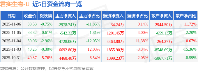 证券之星消息,截至2025年11月6日收盘,君实生物(688180)报收于38.53元,下跌0.75%,换手率0.85%,成交量6.52万手,成交额2.51亿元。