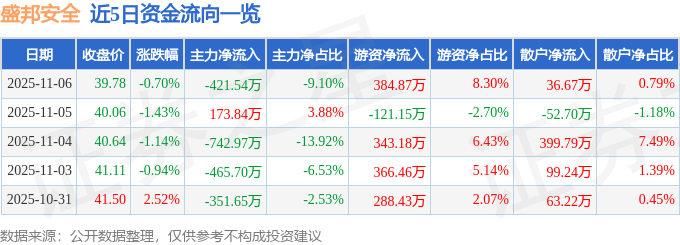 证券之星消息,截至2025年11月6日收盘,盛邦安全(688651)报收于39.78元,下跌0.7%,换手率3.61%,成交量1.17万手,成交额4634.46万元。