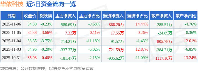 11月6日的资金流向数据方面,主力资金净流出580.69万元,占总成交额9.68%,游资资金净流入866.2万元,占总成交额14.44%,散户资金净流出285.51万元,占总成交额4.76%。