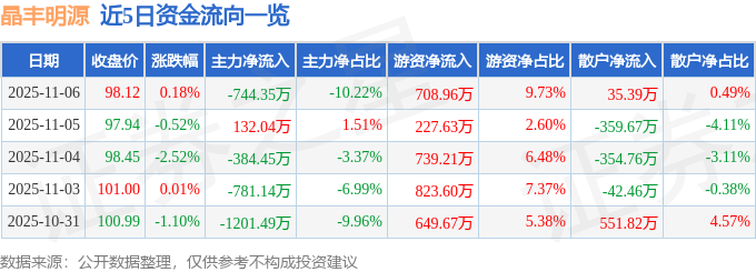 证券之星消息,截至2025年11月6日收盘,晶丰明源(688368)报收于98.12元,上涨0.18%,换手率0.84%,成交量7414.0手,成交额7282.71万元。